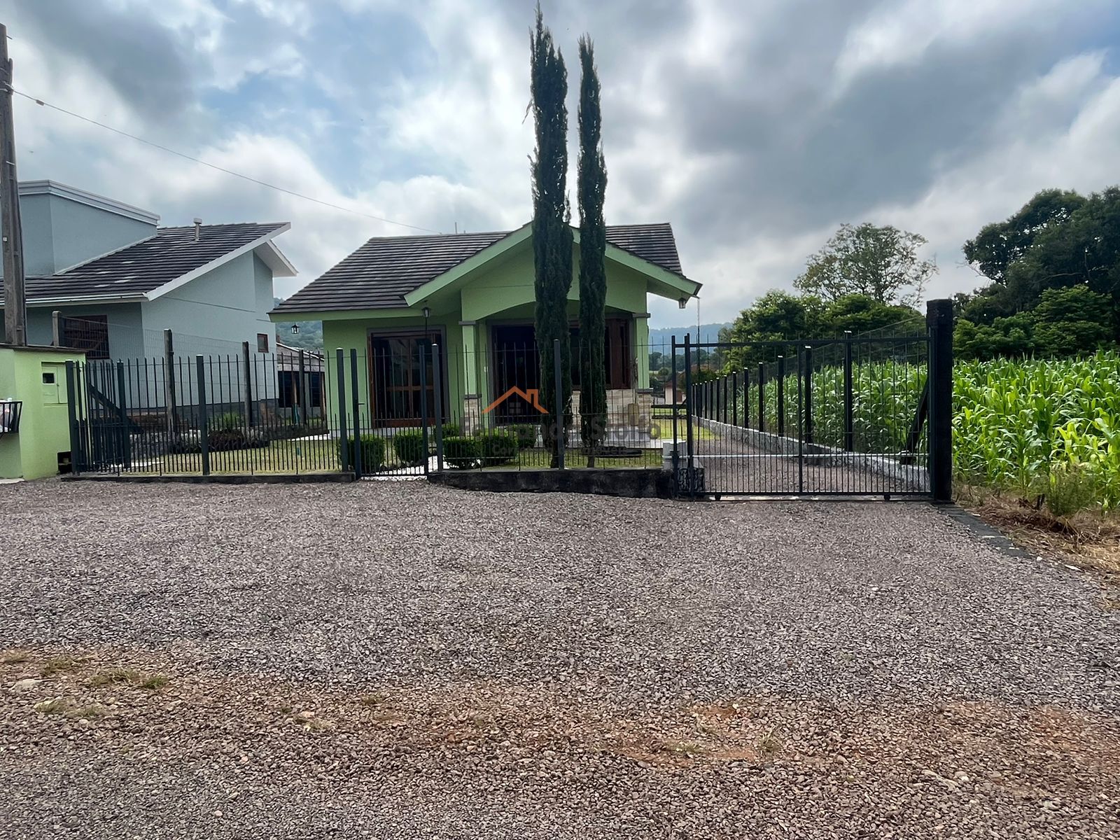 Casa tem portão eletrônico .