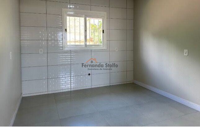 Casa de alvenaria medindo 100,00m², 02 dormitórios, sala, cozinha, banheiro, lavanderia, churrasqueira e garagem.